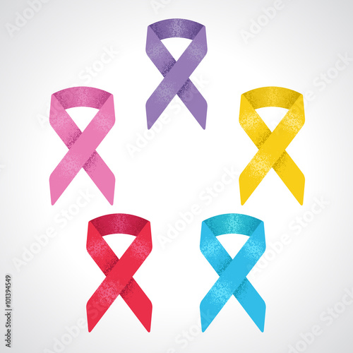 Cancer ribbons, illness awareness ribbons, cause ribbon colors.
